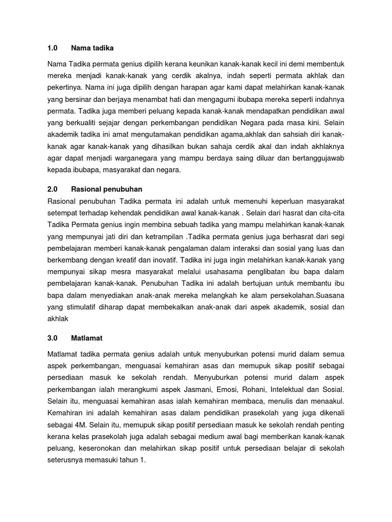 Tadika didefinasikan sebagai mana-mana premis yang menerima lebih daripada empat orang kanak-kanak berumur lima hingga enam tahun untuk tujuan pendidikan dan menerima upah. Latihan peribahasa tingkatan 2 nama taska latihan tatabahasa bahasa melayu tahun 5 objektif penubuhan tadika little caliph presint 15 maksud tadika kemas latihan peribahasa spm pdf matematik tadika 6 tahun. Antara faktor yang membawa kepada penubuhan tadika ini ialah memenuhi permintaan negara terhadap kanak-kanak yang berkualiti untuk menjadi pembangun negara pada masa hadapan.